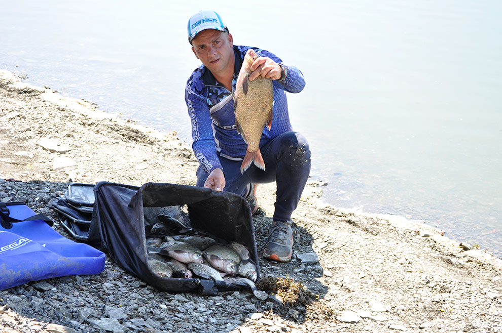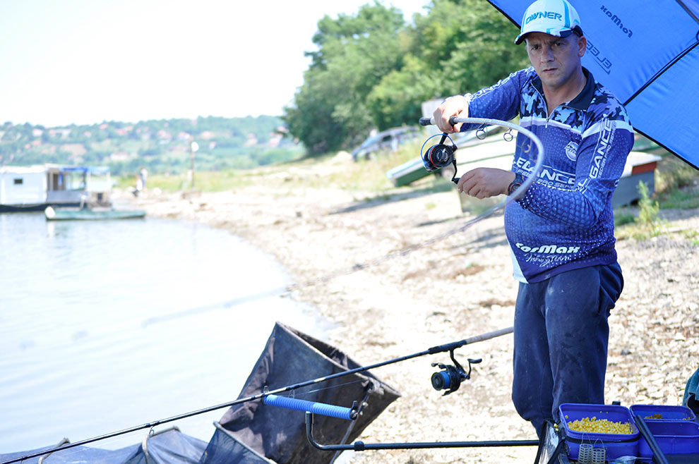 Pecao sam na daljini od 50 metara sa velikim distance hranilicama. Veoma zanimljivo da je jezero bilo totalno mrtvo i bez daška vetra, što se veoma retko viđa. Koristio sam štapove Formax Superchamp Feeder 3.90 m težine bacanja 130 g, mašinice Formax Elegance Method 5000 i velike Guru distance hranilice (Guru X-Change Distance Feeder Large Cage) težine 40 g. Udice su bile Owner 50340 Chinta veličine 10, dok je predvez bio Formax Rig Master 0.14 mm.