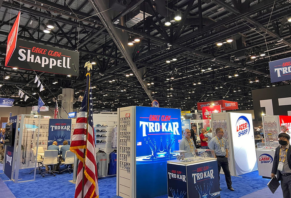 Štand kompanije Eagle Claw - još jedan domaći proizvođač prvenstveno udica, vrlo popularan u USA zbog generalno pristupačnih cena ali i vrhunskih Trokar serija udica za bassolov