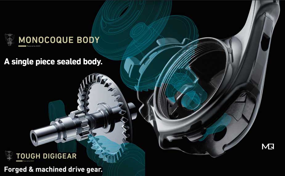 Takođe, Exist LT ima neverovatan nivo preciznosti izrade, u osovini ručice nema ni najmanjeg lufta svih ovih godina, ali baš baš ni najmanjeg. To takođe ranije nisam video ni na jednom drugom modelu. Zaista fantastično i svedoči koliko se Daiwa potrudila oko ovog modela, odnosno novog „monocoque“ kućišta - jednog obrađenog komada metala sa okruglim poklopcem na navoj, koliko je novi i znatno uvećani hladno kovani pa mašinski obrađeni „Tough Digigear“ pogonski zupčanik od duraluminijuma i ceo prenosni mehanizam u stvari precizno izrađen i kvalitetan. Uz dobro urađene i uležištene metalne oslonce, kvalitetne ležajeve na svim mestima gde se nešto vrti – eto recepta savršenstva i tišine. Ovakva preciznost izrade kućišta i prenosnog mehanizma može se porediti maltene jedino sa izradom skupih satova. I sve je to sada naravno preneto u novi 22 Exist LT model.