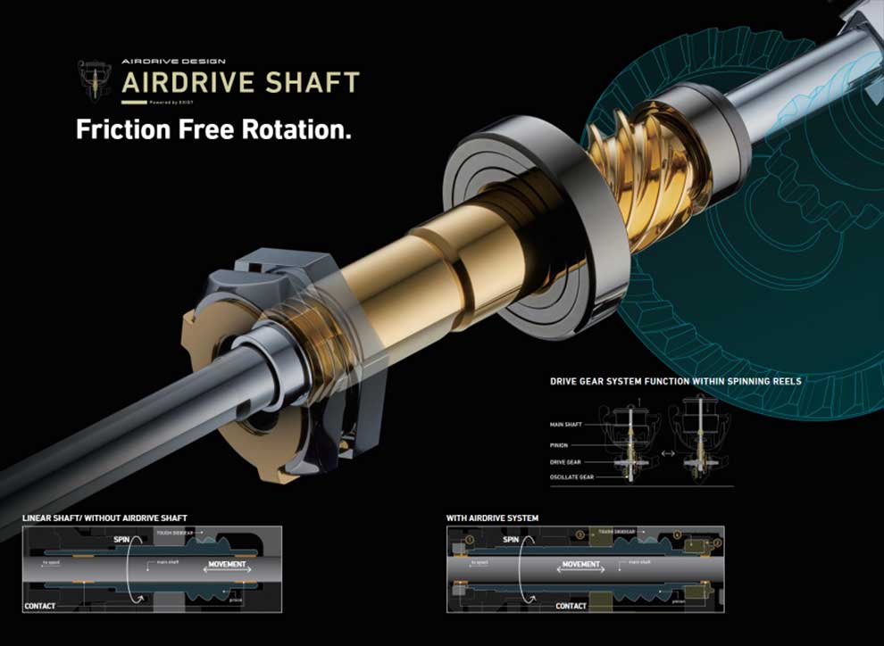 Novi dizajn kompletnog prednjeg dela novog Exista Daiwa zove "Airdrive" konceptom - nova špulna, rotor, preklopnik, vođica strune... sve novo. Čak su dodatno redizajnirali i plivajuću osovinu špulne u cilju što manjeg trenja i glatkoće rotacije mašinice