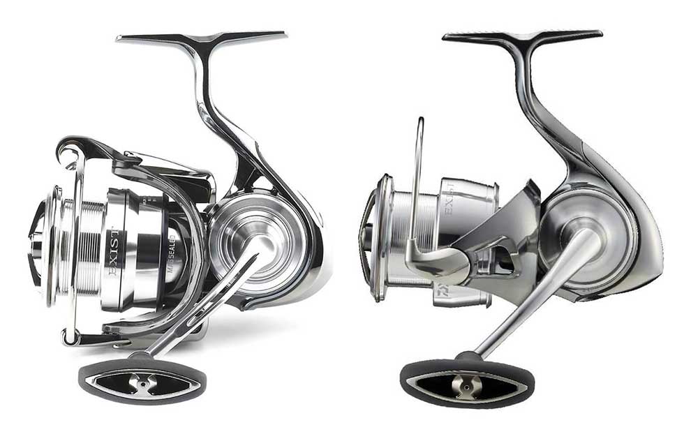 18 Exist LT i 22 Exist LT jedan pored drugog - iako Daiwa kaže da su se sada pozabavili samo prednjim delom mašinice, pažljivo oko će primetiti da im ni kućišta nisu baš potpuno identična - 22 Exist nema više rupicu na kućištu. Dizajn je naravno sada još moderniji.