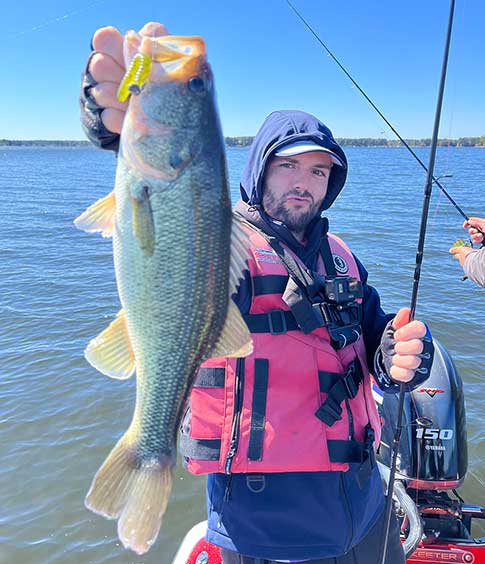 Bass od 3.7 lbs (1.67 kg) ulovljen u zalivu ostrva sa obalama od crvene gline...