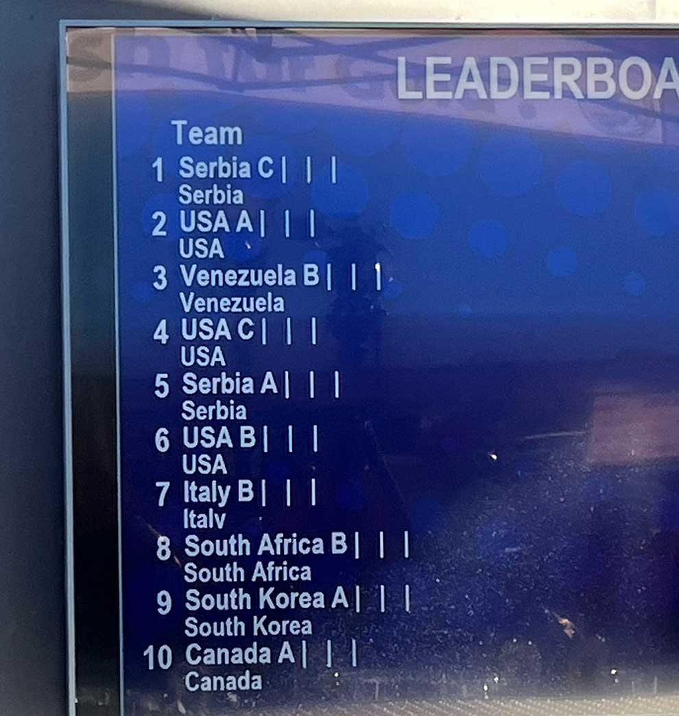 Srbija je trećeg dana bila vodeća do kraja tog dana takmičenja na leaderbord tabli sa rezultatima ekipa!