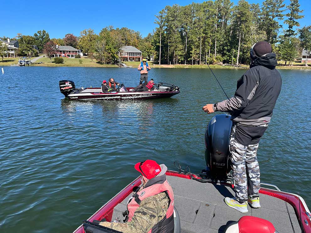 I stvarno, sledećeg jutra u 7.00 h, maltene u minut tačno, stiže svih pet čamaca u zaliv i na mol ispred naše iznajmljene kuće. Ukrcavamo se i krećemo. Svaki čamac prema ranijem dogovoru ide u drugi deo ovog zaista ogromnog jezera dugog skoro 60 km i površine preko 50.000 hektara. Najveći šok za nas su pored veličine jezera bile brzine kojima se kreću ovi čamci (preko 100 km/h) tako da smo se dobro posmrzavali u vožnji i pritom držali rukama, nogama i zubima da ne poispadamo iz njih. Naravno, vremenom smo se polako počeli navikavati i prijala nam je itekako činjenica da svuda stižeš za najviše 10-15 minuta takve vožnje. Svi čamci su imali zaista odličnu opremu, naš je recimo imao motor od čak 250 konja i kompletnu Humminbird elektroniku na sebi – dva velika međusobno povezana Solix sonara sa ekranima na dodir od 10 i 12 inča te Minn Kota Ulterra pramčani motor napred koji na dodir tastera sam izlazi iz vode ili se vraća u nju (i sa vrlo korisnom „Spot Lock“ opcijom). Insistiramo da i vodiči obavezno pecaju sa nama iz razloga da bi videli kako oni to rade i koje varalice odnosno tehnike koriste.