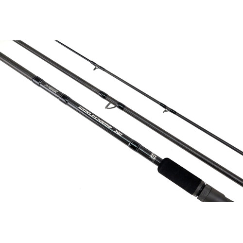 Worldchamp 3.90m 120g: fantastičan štap idealan za pecanje na većim rekama i jezerima, dizajniran sa posebnom pažnjom da bude jak, žilav i veoma brze akcije. Blank štapa je pritom elegantan i malog prečnika ali je debljina zidova povećana kako bi ovaj štap mogao da se nosi sa najvećim izazovima - velikim rekama sa jakim tokom i borbe sa krupnim ribama. Kod ovog modela stavili smo dvostopalne Fuji Alconite K provodnike (sa prvim provodnikom od 25mm) a koji pomažu kod daljih zabačaja. Idealan feeder štap za Dunav, Savu i druge velike reke sa jakim tokom, kao i za pecanje mrene sa teškim hranilicama. Sa ovim štapom, iako je naznačene težine bacanja 120g, možete zabacivati hranilice do 150g bez ikakvih problema, a ako koristite prilagođene window hranilice (ili neke druge hranilice za daleke zabačaje), bićete precizni na daljinama do 100m. Ovaj model dolazi sa vrhovima: 3, 4 i 5 oz a prečnik baze vrha je 3.3 mm. Težina štapa: 256g.