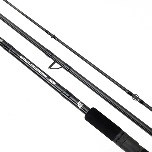 Worldchamp 4.20m 130g: fantastičan štap idealan za pecanje na velikim rekama i jezerima (najduži i najjači model iz ove serije), dizajniran sa posebnom pažnjom da bude jak, žilav i veoma brze akcije. Blank štapa je pritom elegantan i malog prečnika ali je debljina zidova povećana kako bi ovaj štap mogao da se nosi sa najvećim izazovima - velikim rekama sa jakim tokom i borbe sa krupnim ribama (kao i veoma dalekim zabačajima). Kod ovog modela stavili smo dvostopalne Fuji Alconite "K" provodnike (sa prvim provodnikom od 25mm) a koji pomažu kod dalekih zabačaja. Idealan feeder štap za Dunav, Savu i druge velike reke sa jakim tokom, kao i za pecanje mrene sa teškim hranilicama. Sa ovim štapom, iako je naznačene težine bacanja 130g, možete slobodno zabacivati hranilice 150+ grama bez ikakvih problema, a ako koristite prilagođene window hranilice (ili neke druge hranilice za daleke zabačaje), bićete precizni na daljinama i do 150m. Ovaj model dolazi sa vrhovima: 4, 5 i 6 oz a prečnik baze vrha je 3.3 mm. Težina štapa: 297g.