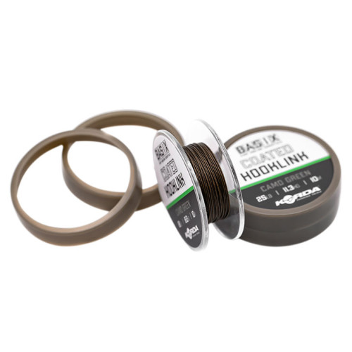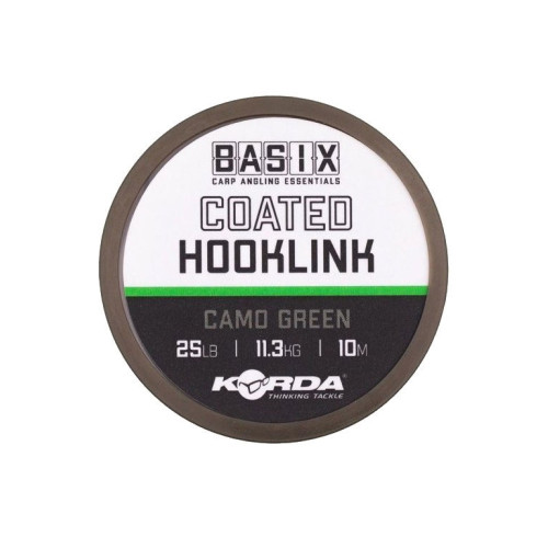 BASIX Coated Hooklinks su mekane, gipke obložene pletenice koje se mogu koristiti za izradu svih vrsta predveza za pecanje. Korda Basix Coated Hooklink dolazi na kalemu od 10m i izborom između 18lb ili 25lb.