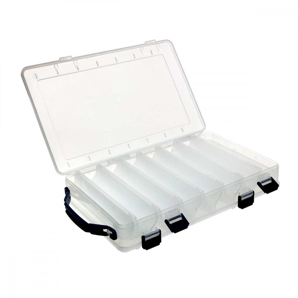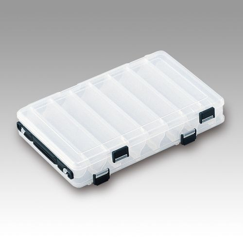 Dvostrana plastična providna kutija izuzetnog kvaliteta čuvenog japanskog proizvođača Meiho. Dimenzije: 275x187x50 mm. Poseduje po 7 specijalno oblikovanih poprečnih komora sa posebnim "V" oblikom dna tako da varalice (vobleri) u njoj savršeno leže sa udicama na dole i u procepu, tako da ne dolazi do pomeranja i mršenja udica. Made in Japan (proizvedeno u Japanu).