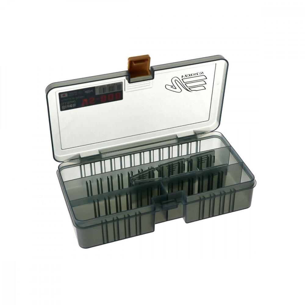 Izuzetno Izuzetno kvalitetna plastična kutija providno-sive boje, dimenzija 214x118x45 mm. Ima 3 fiksne uzdužne komore pri čemu je jedna pregrađena na pola, plus više pomičnih pregrada kojim se dodatno može regulisati smeštajni prostor. Made in Japan (proizvedeno u Japanu).