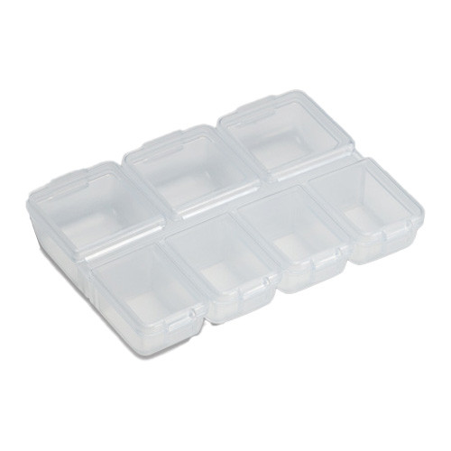Providna plastična kutija koja ima 7 malih odeljaka sa pojedinačnim poklopcima na šarkama. Ovi mali odeljci su idealni za čuvanje rasutih udica, olova ili sitnog ribolovačkog pribora.