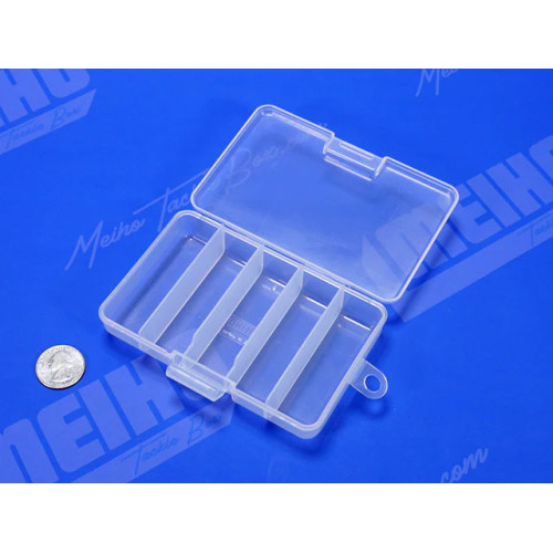 Meiho Mini Hunter je prozirna izuzetno čvrsta plastična kutija koja ima 4 dugačke plastične pregrade koje stvaraju 5 odvojenih prostora za skladištenje. Ovi mali odeljci su idealni za čuvanje rasutih udica, olova ili sitnog ribolovačkog pribora.