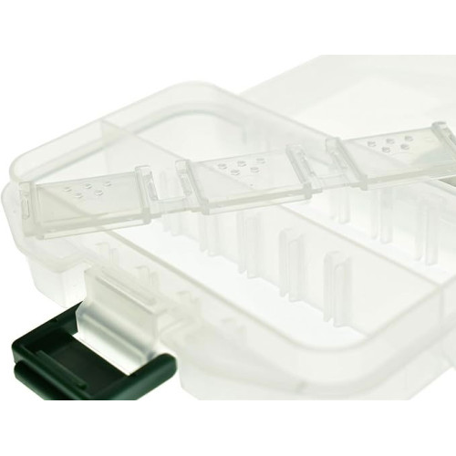 FLY CASE SS je prozirna izuzetno čvrsta plastična kutija koja sadrži jednu fiksnu i šest uklonjivih plastičnih pregrada, što omogućava ukupno osam mogućih odeljaka za skladištenje.Ovi odeljci su idealni za čuvanje rasutih udica, olova ili sitnog ribolovačkog pribora.