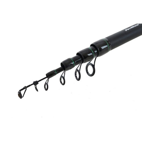 Teleskopski štap sa provodnicima izrađen od kompozitnog materijala i fantastično pristupačne cene. Odličan izbor za lov bele ribe na plovak, odnosno za početnike. Opremljen je aluminijum-oksid provodnicima, "patent" držačem mašinice i kapom na kraju drške.