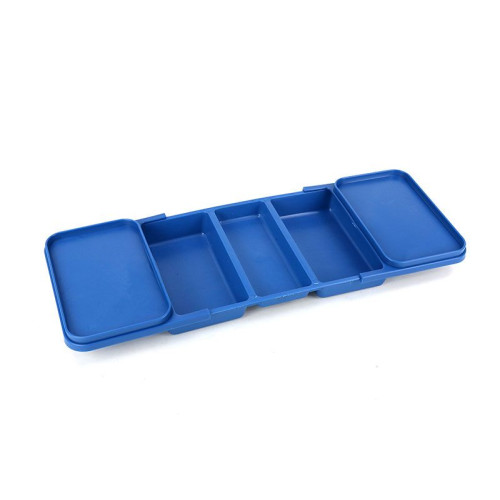 Plastična tacna za mamce i razne sitnice koja ima 5 komora i postavlja se na klasičan držač štapa sa navojem. Dve najšire komore na krajevima su klizne, odnosno razvuku se u krajnje položaje i tada je tacna dimenzija 50x19x5 cm, dok je sklopljena za transport 31x19x5 cm (može se i tako koristiti, samo su tada otkrivene 3 komore a 2 su ispod, zatvorene). Poseduje i ispod ugrađen standardan metalni navoj za držač.
