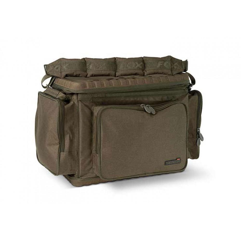 Prvoklasna torba za pribor iz asortimana poznatog engleskog proizvođača Fox, sa tvrdim poklopcem i dnom. Poseduje veliki smeštajni prostor u sredini i tri velika trodimanzionalna džepa spolja (jedan veliki napred i dva na bokovima). Ispod tvrdog poklopca nalazi se takođe i nekoliko mrežastih džepova za razne sitnice. Izrađena je od izdržljivog 300D poliestera. Dimenzije: 60cm x 38cm x 44cm.